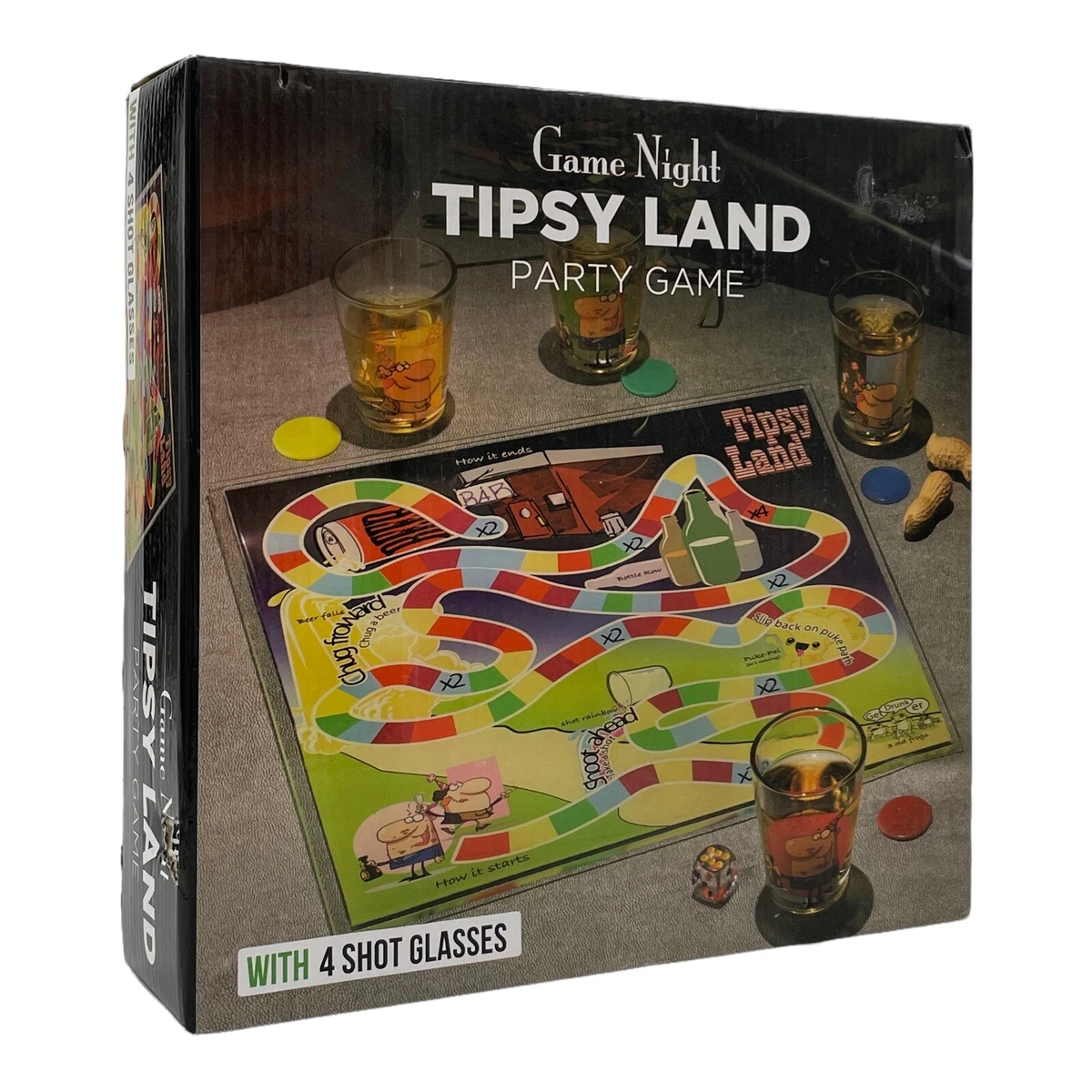 Tipsy Land Glass Board Drinking Party Game W 4 Shot Glasses 2 4 Players Ages 21 Ebay